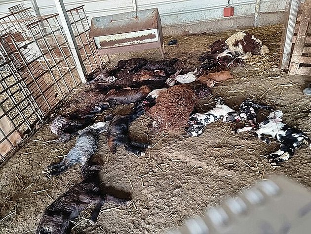 Sheep on a Palestinian farm killed by Israeli settlers in West Bank Al-Mughayyir, Ramallah, April 2024.