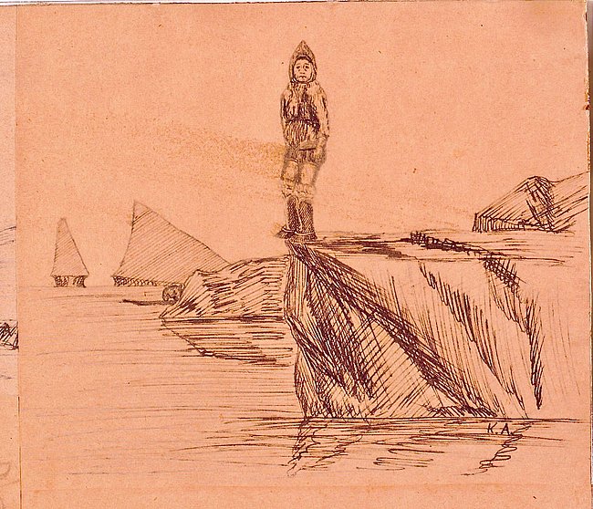 Kaarale Andreassen Kalaallit Nunaat, Kvinde pa en klippe Woman on a Cliff, n.d.