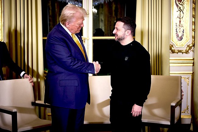 U.S. President Donald Trump with Ukraine’s President Volodymy Zelensky in Paris on Dec. 7, 2024.