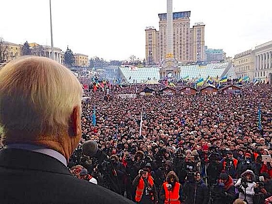 John McCain addressing crowd in Kiev, Dec. 15, 2013, two months before the overthrow.