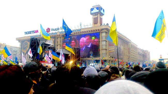 Protesters with OUN-B red and black flag among Euromaidan protesters in Kiev, December 2013.