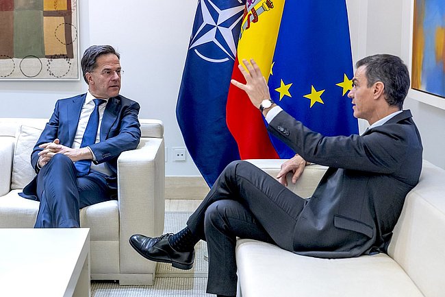 NATO Secretary General Mark Rutte meeting in Spain with the country’s Prime Minister Pedro Sanchez on Jan. 27, 2025.