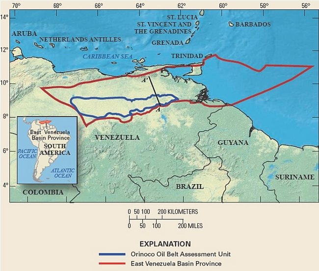 Map of Orinoco tar sands assessment unit by USGS, 2009.