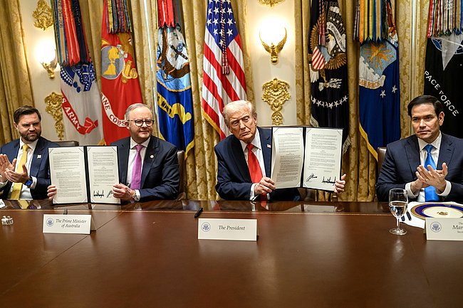 Hegseth used this year’s AUSMIN meeting to detail a sweeping list of joint initiatives: upgrades to Australian air bases to accommodate expanded U.S. bomber rotations; co-production of guided weapons, precision-strike missiles and hypersonic systems; enhanced cooperation on Mark 54 torpedoes; and the integration of rare-earth and critical-mineral supply chains.
